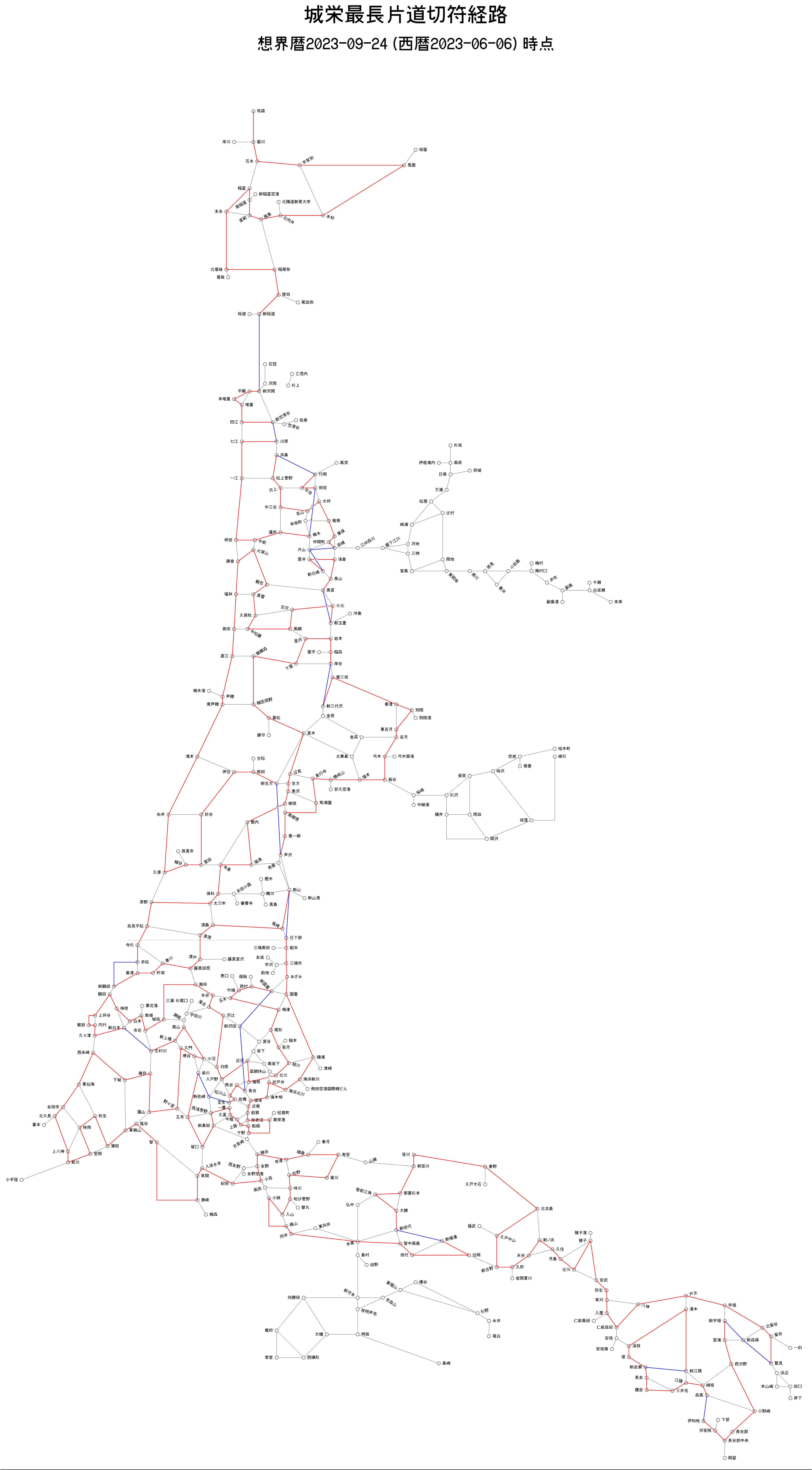 日本全国のJR線について最長片道切符の経路を考えることができますが、城栄全国のJR線についても同様に最長片道切符の経路を考えることができます。